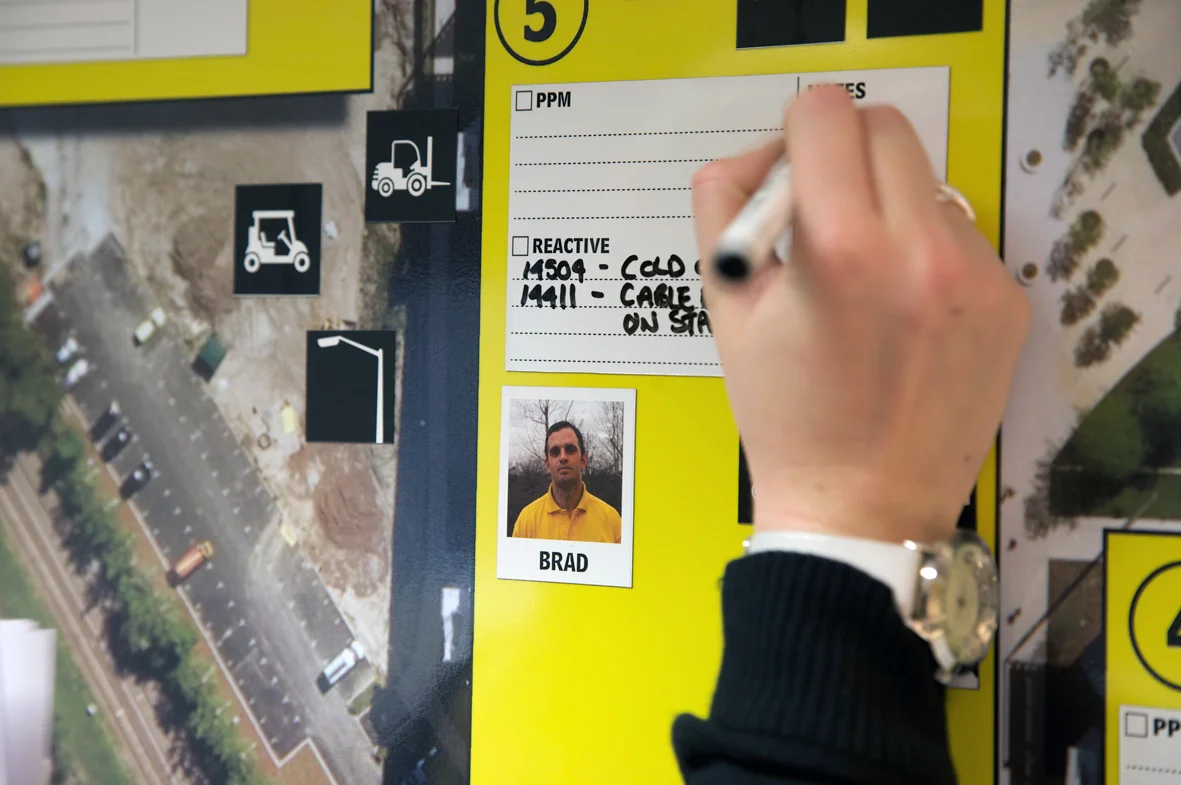 I'm working with Simon Hill at Sanderson Cleaning Services to create an interactive board that will provide their on-site team with up to date information on planned work, weather, maintenance issues etc. The board will be magnetic and 'dry-wipe' so that information can be moved around and changed continuously.
