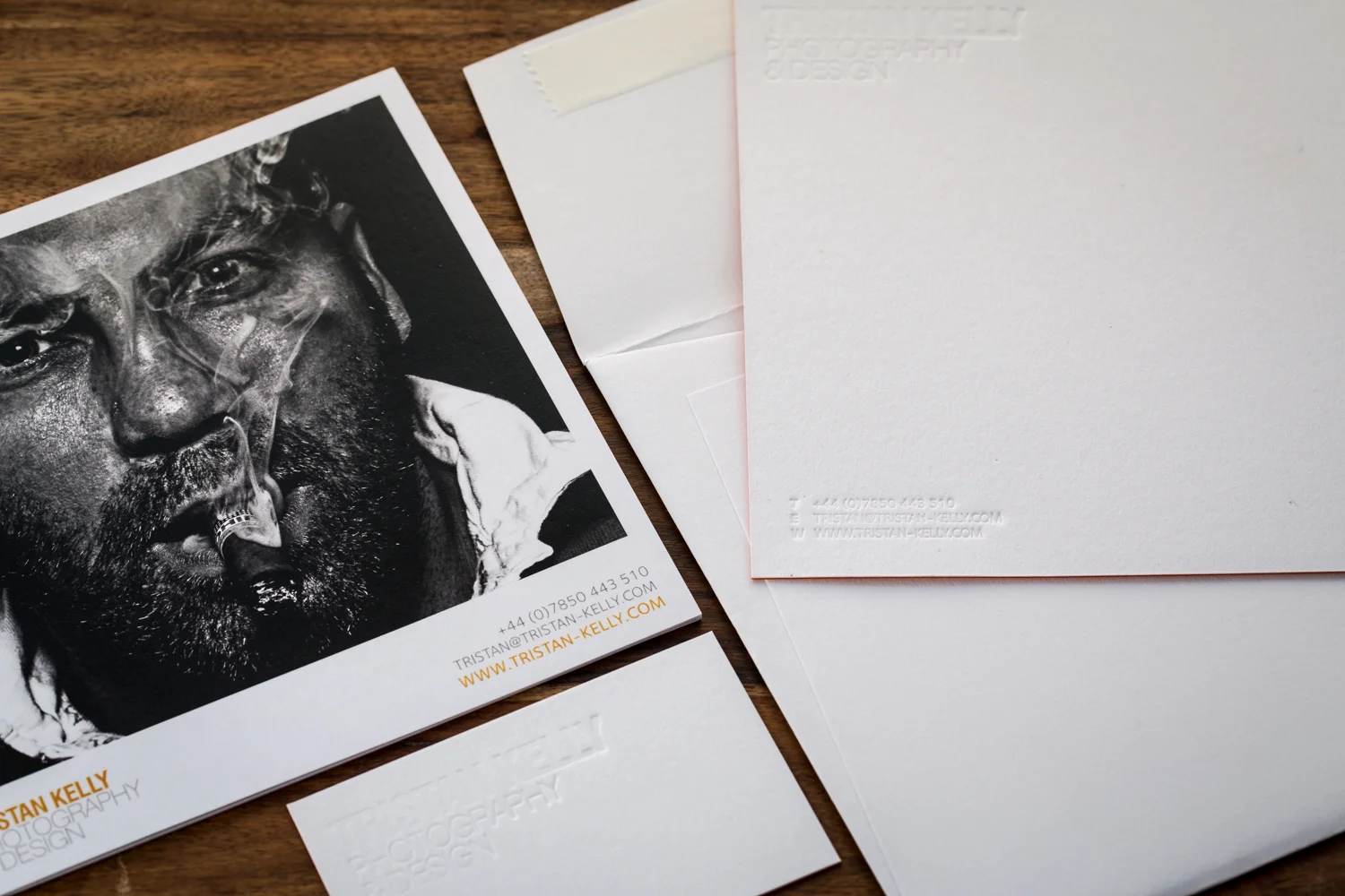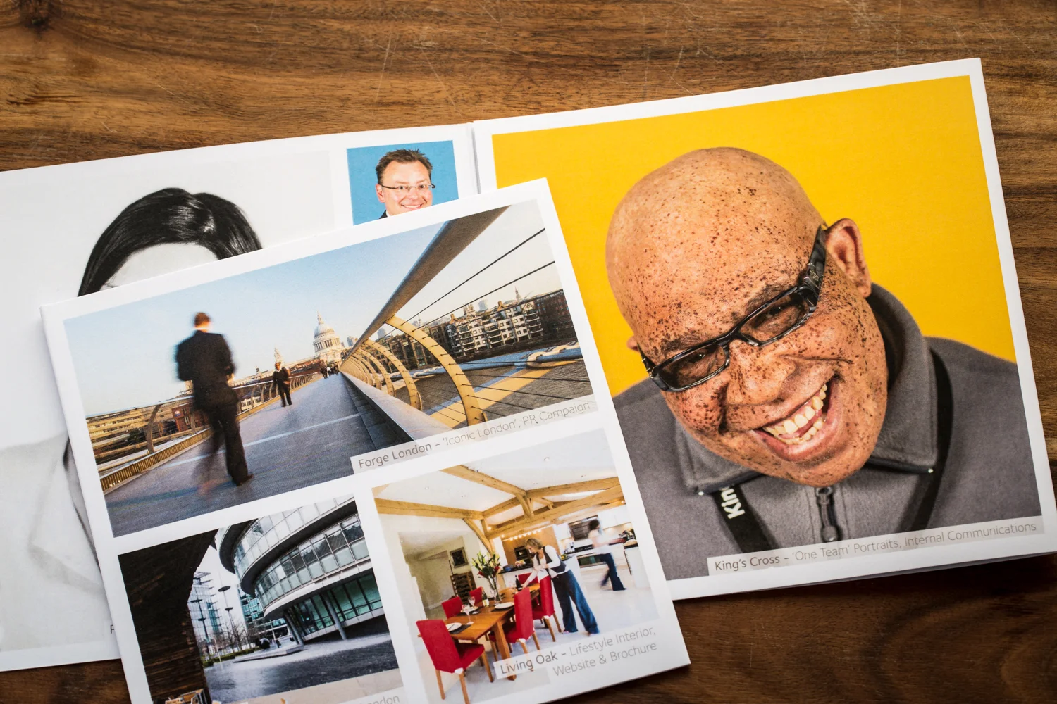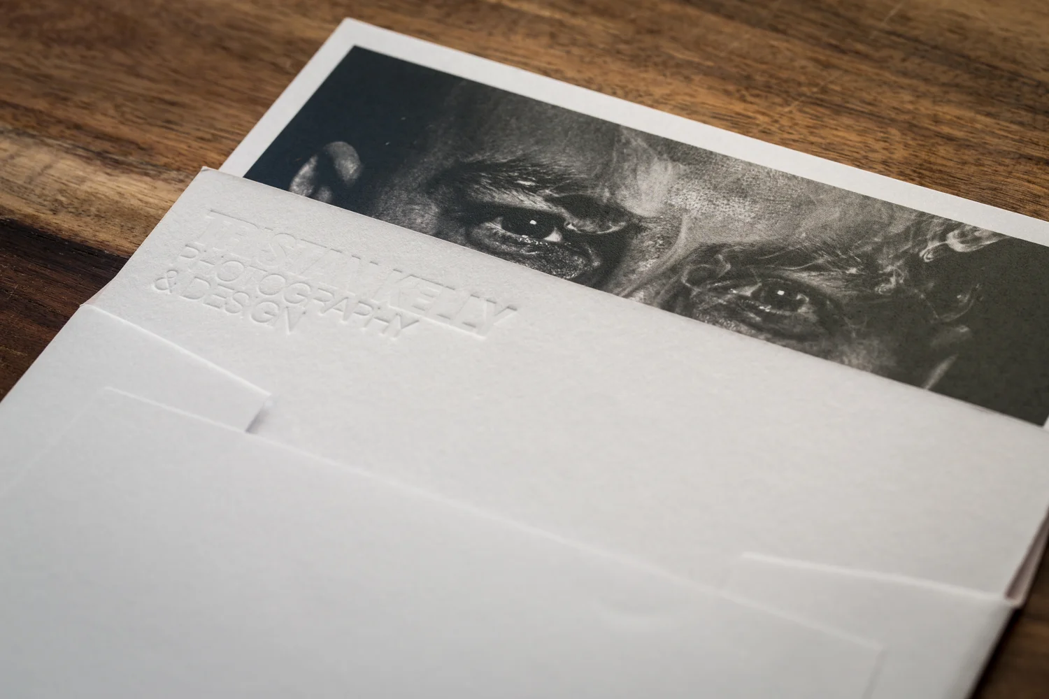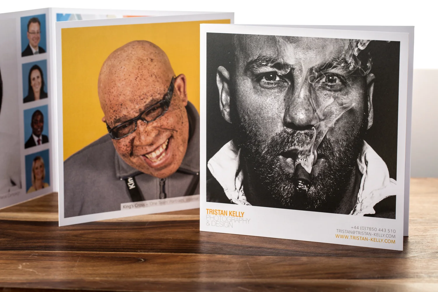 In an ever-increasing digital age, I was keen to promote my photography services using the medium of print. I designed a 6-page standard gate fold mailer and chose a small number of commercial images to highlight a range of skills. Choosing a dozen or so images from 1000's to convey skills within portraiture, reportage, editorial, fashion, and architecture was a tough task. Thankfully Mark Yates helped me see clearly what was 'in' and what was definitely 'out'.